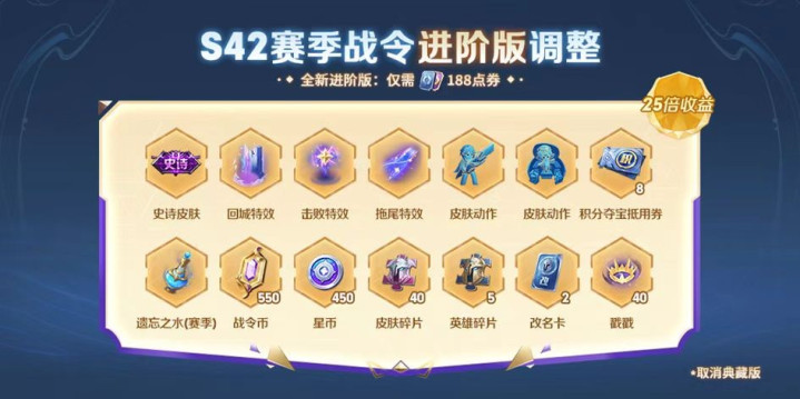 不知道大家觉得这个进阶的方向,是否符合大家心中的预期呢?除了皮肤进阶外,实际上战令其他改动也不小,比如战令改为188点券,取消勇者皮肤和典藏版,很多玩家都不知道这究竟是利是弊?