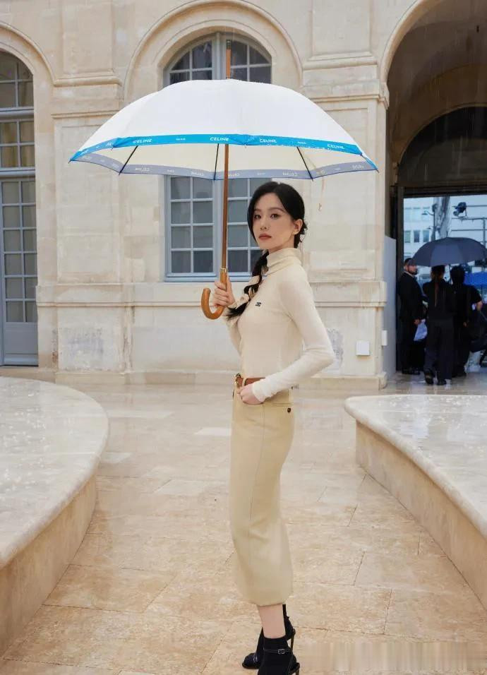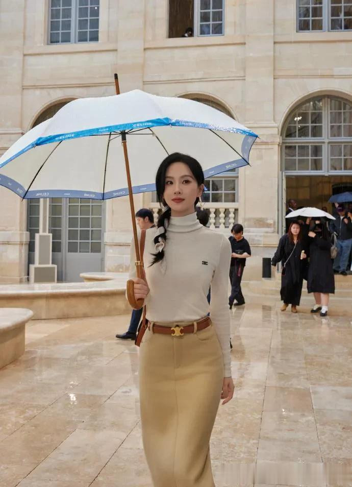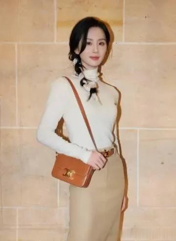 刘诗诗的气质真是出挑! 穿白色高领衫+卡其色半裙, 简约又高级!