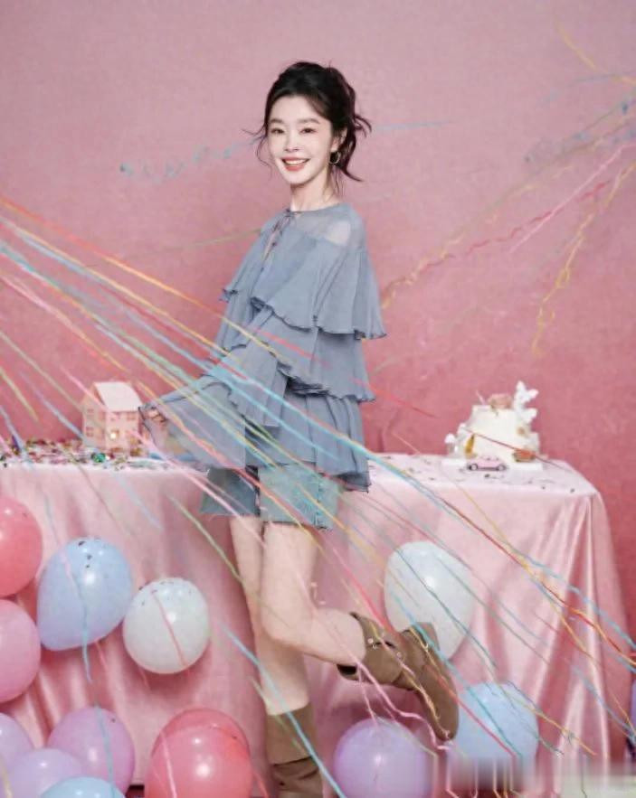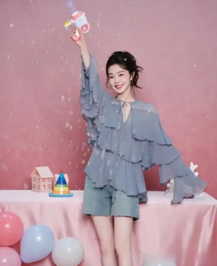 35岁宋轶带火“雾霾蓝穿搭”, 衬衫搭短裤、短靴, 高扎马尾有活力